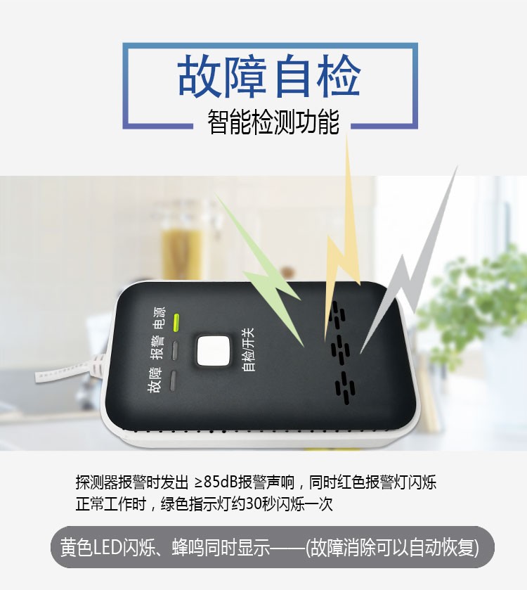 报警方式:声光报警;联动电磁阀输出(可选);常开/常闭输出(可选)